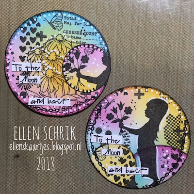 We are well into December and the Art Journey challenge is rolling nicely. This month Liesbeth wants you to make atc coins. Small pieces of art, made on 2.5"circles, of course made with Art Journey stamps. You can read all about it on the Art Journey design team blog.